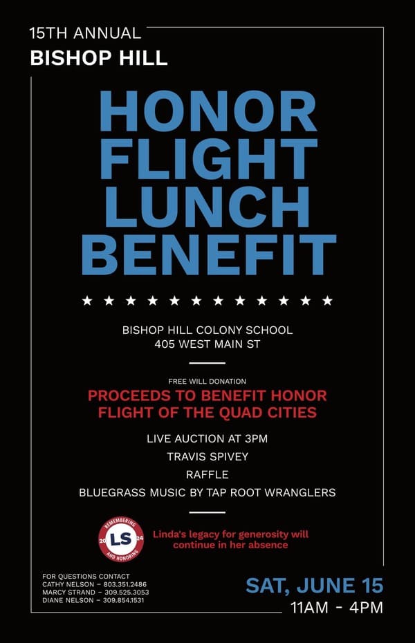 The main event unfolds on June 15 at the Colony School, with a pulled pork lunch, live bluegrass music, and a promising auction all set to raise funds for the Honor Flight of the Quad Cities. This initiative has heroically garnered over $160,000 to date, providing veterans a memorable journey to Washington, D.C. to honor their service. Don’t forget to bring items to donate at Prairie Arts Center for the live auction. For more details go to BishopHillHeritage.org.