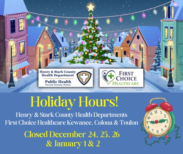 The Henry and Stark County Health Departments have announced that their offices and First Choice Healthcare Clinics in Kewanee, Colona, and Toulon will be closed on Thursday, January 1st, and Friday, January 2nd, in observance of the New Year’s holiday. Despite the closures, a limited number of home services staff will still be available to provide essential in-home care for those in need.