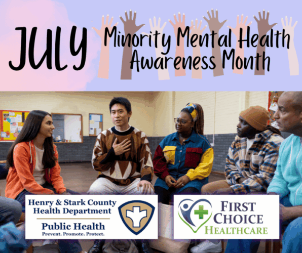 The Henry and Stark County Health Department, together with First Choice Healthcare, is highlighting National Minority Mental Health Awareness Month throughout July. This year’s theme, “Turn Awareness into Action!” calls on everyone to address mental health disparities faced by racial and ethnic minority communities. Statistics reveal significant gaps in mental health care: just 25% of Asian adults, 36% of Hispanic/Latino adults, and 39% of Black/African American adults with mental illness sought treatment, compared to 52% of non-Hispanic white adults. First Choice Healthcare continues its commitment to supporting everyone by providing culturally informed mental health services across clinic and school-based settings. For more information or to make an appointment, visit the Henry and Stark County Health Departments’ website, or follow them on Facebook, X, and Instagram.