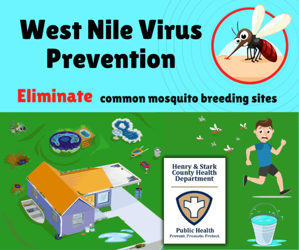 The Henry and Stark County Health Department is urging residents to take action against the rising mosquito population attributed to this summer’s wet and humid weather. Officials warn that the Culex mosquito, known for spreading West Nile Virus, breeds in standing water often found in artificial containers like cans, buckets, or old tires. Residents are encouraged to empty, discard, or cover items that can hold water for over four days and keep gutters and bird baths clean. Mesh screens on windows and doors are also recommended. Health officials stress that these steps help reduce both mosquito numbers and health risks in the community.