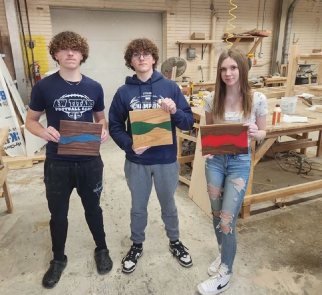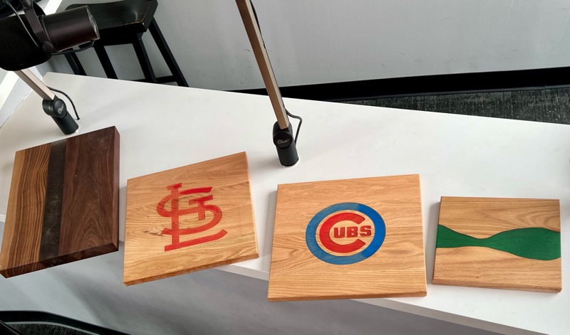 Wethersfield students in second-period woodworking class made six cutting boards for Quarter Madness. “They did an excellent job! Also, don’t forget to bid on them to support the Rotary.” Jon brought four of the cutting boards to the studio interview. They are indeed works of art. See the pictures below. Excellent work, kids!