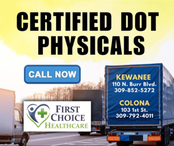 Attention professional drivers! Stay on top of your game with First Choice Healthcare, in partnership with Henry & Stark Health Department. They are here to simplify meeting your professional driving requirements. RaeAnn & Seth discuss how their certified DOT Physicals are now available in both Kewanee and Colona, ensuring that you can easily access the services you need to keep moving forward and keep driving. Why let the hassle of paperwork slow you down? Call them today and schedule your appointment at First Choice Healthcare – where they help your health and career drive forward together.