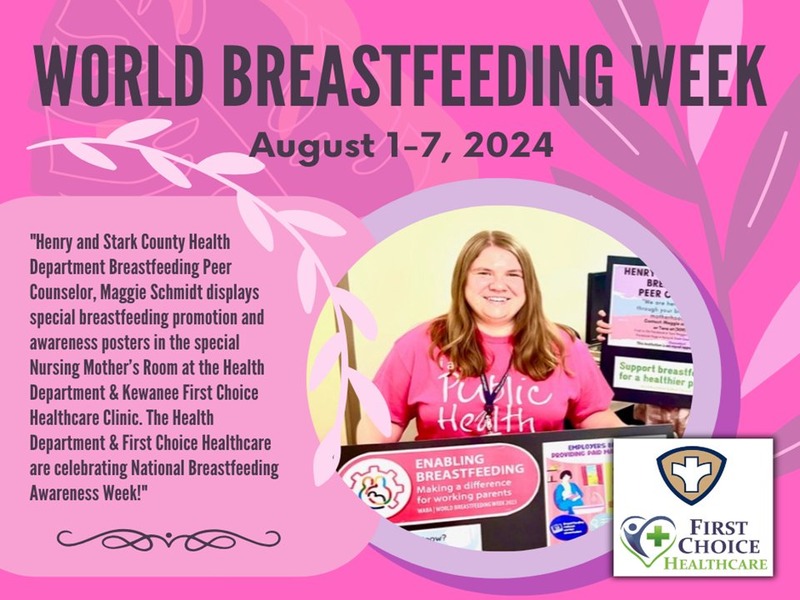 Henry & Stark County Health Departments & First Choice Healthcare in Kewanee and Colona announce that August 1st–7th has been proclaimed World Breastfeeding Week (WBW) and August has been proclaimed Breastfeeding Month and is celebrated by more than 120 counties nationwide. The theme is “Closing the Gap: Breastfeeding Support For All.”