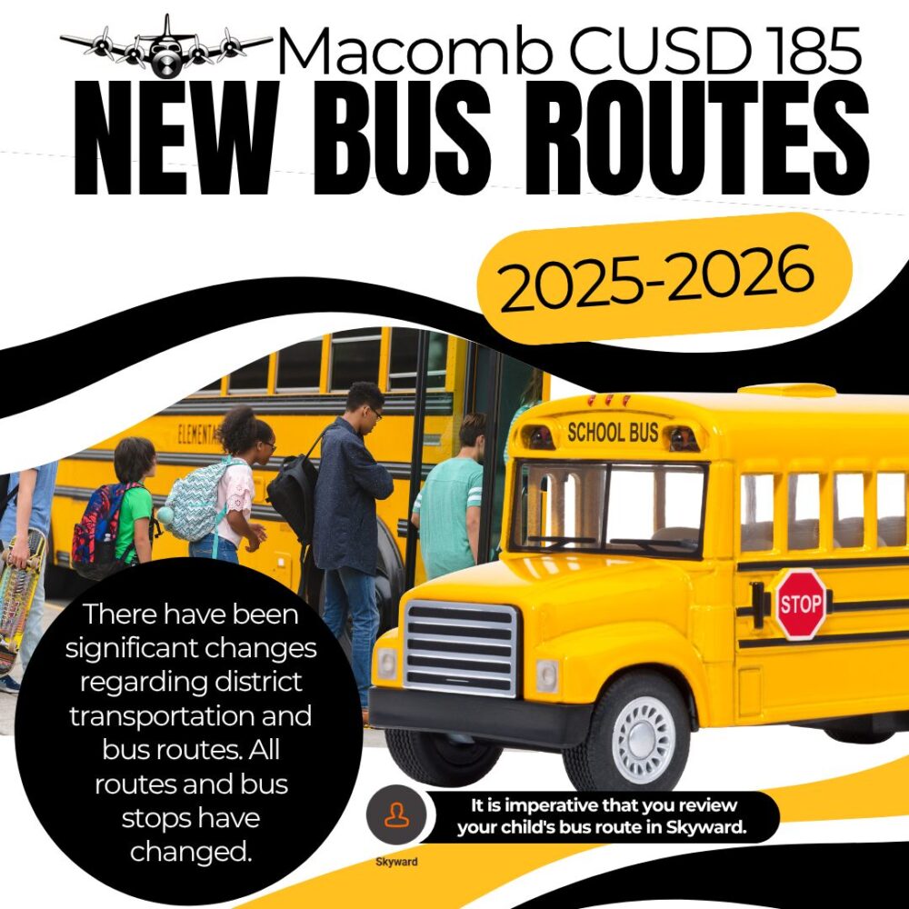 To review the changes login into Skyward Family Access, go to the district website: www.macomb185.org and select the Skyward button in the middle of the page. Type in your credentials and click on the Busing tab to review.