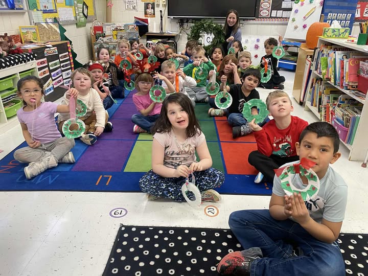 Anne Ingersoll from Bloom visited Mrs. Burnham’s kindergarten class. She gave them a wonderful sensory experience by bringing a real pine wreath. Later, the students crafted their own paper version.