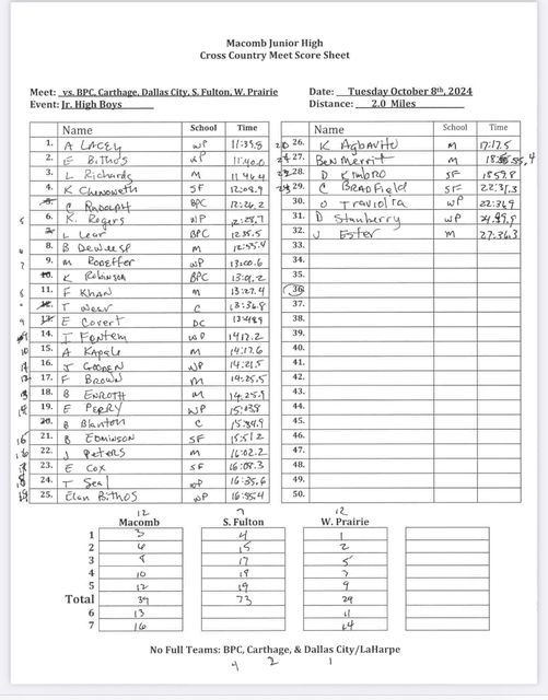 Bomber MS Cross Country results: