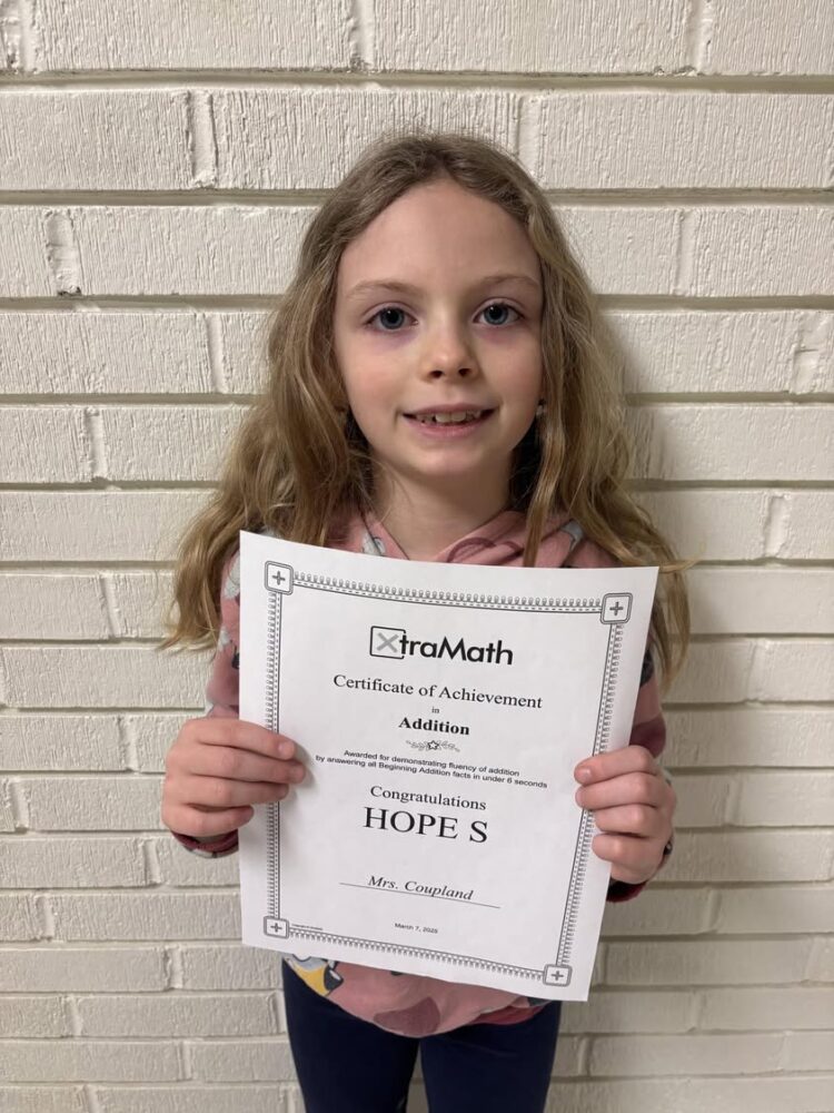 Hope has mastered her addition facts in the Xtra Math program! #MAC185
