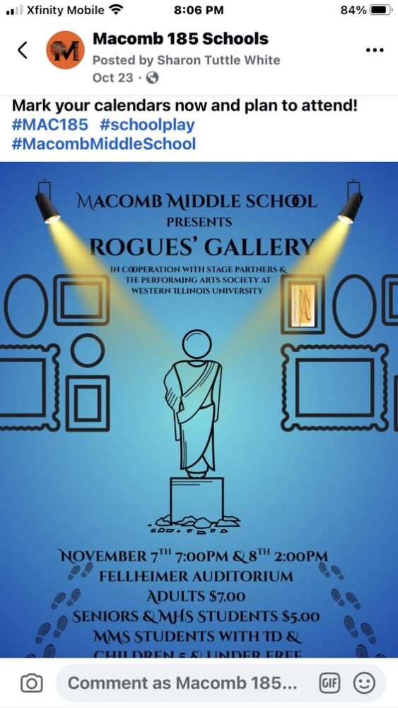 HomeNewsLocalWestern IllinoisIt’s a week away!! Come out and see a talented group of inspiring Thespians at this year’s production. These students ha…It’s a week away!! Come out and see a talented group of inspiring Thespians at this year’s production. These students ha…Sun, November 2, 2025 by Macomb Schools 185SHARE NOW It’s a week away!! Come out and see a talented group of inspiring Thespians at this year’s production. These students have worked so hard, and can’t wait for you to see what they have to share! #MAC185 #macombmiddleschool #schoolplay