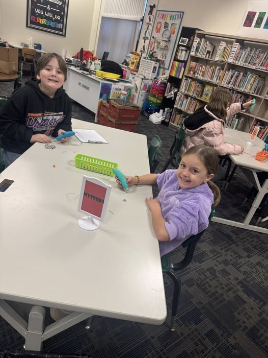 Makerspace Friyay for Mrs. Dunseth’s class. This month they are doing 3D pens with Mrs. Brookman. #MAC185 #edisonbombers…