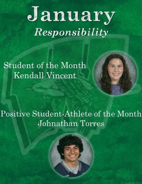 January’s core value of responsibility has been embodied by standout students at Wethersfield High School. Kendall Vincent, nominated by Mrs. Frank, has demonstrated exceptional accountability through her involvement in numerous leadership roles, including basketball, volleyball, cheerleading, student council, FCA, FFA, NHS, and more. Her dedication to fulfilling obligations has set a remarkable example for her peers. Meanwhile, Junior Jonathan Torres has been named the WHS Positive Student-Athlete of the Month. Known for his unwavering positivity, Jonathan’s infectious smile and uplifting attitude have made him a standout on the football and basketball teams. Congratulations to both Kendall and Jonathan for their outstanding contributions!