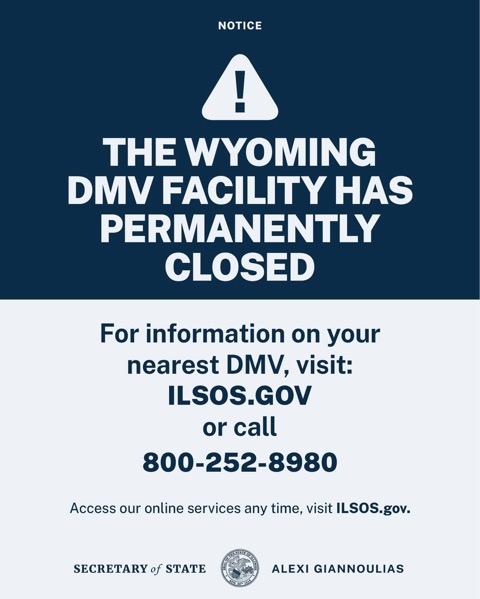 The Wyoming DMV has announced the closure of its current location following recent criminal activities unrelated to its operations. Representative Travis Weaver highlighted ongoing safety concerns affecting staff and visitors. This decision came after another tenant in the building faced charges, prompting action to protect those accessing DMV services. The Secretary of State’s Office is actively considering alternate locations or possibly deploying a mobile unit to ensure continued service. Residents needing information or assistance can reach out to the office at 309-204-6514 for further guidance on how services will be handled moving forward. Visit https://www.ilsos.gov/ for online services or more information.