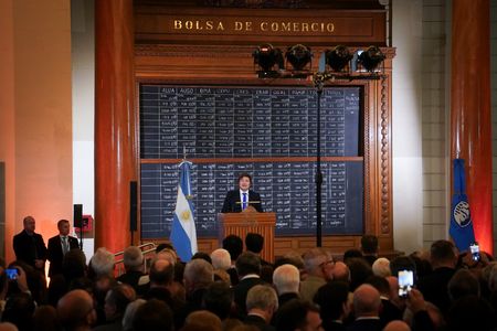 NEW YORK/LONDON (Reuters) -Argentina’s bonds, stocks and currency surged on Monday after President Javier Milei’s party won an overwhelming victory in a Sunday midterm election, a key requisite to keep economic reforms on track and a U.S. financial backstop in place.