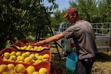 NAOUSSA (Reuters) -July is harvest time in Greece’s northern peach orchards, where pickers mount wooden ladders and carefully place the fruit in crates ready for factories that peel, slice and can them, often for consumers in the United States.