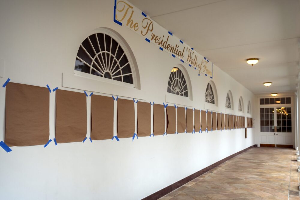 White House staff sent out a burst of social media posts Wednesday afternoon gleefully promoting the finished project. The media may get its first in-person glimpse of the Walk of Fame when Trump hosts a dinner Wednesday night on the new Rose Garden patio that sits adjacent to the West Wing Collonad on which the portraits hang.