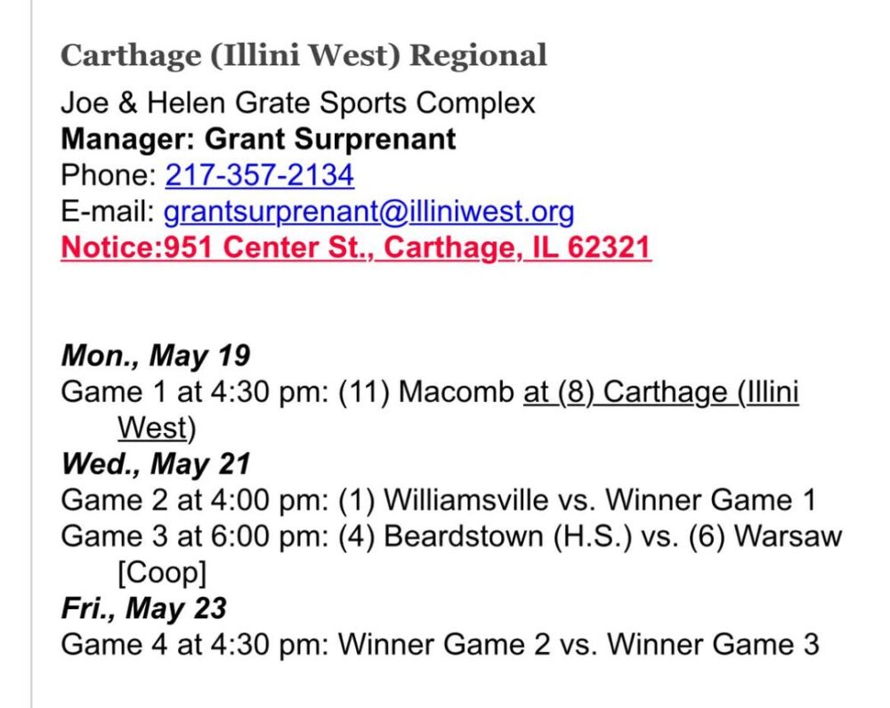 Bomber Softball IHSA Regional schedule. Sectionals hosted at MHS. #OnceABomberAlwaysABomber