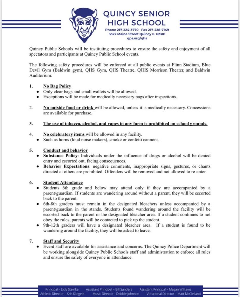 Bomber Track and Field: we will be at Flinn Stadium on April5. Please be aware of this policy. #OnceABomberAlwaysABomber