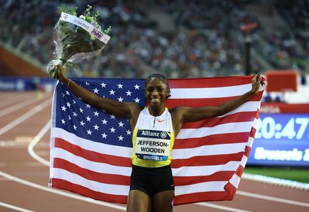 BRUSSELS (Reuters) -American sprinter Melissa Jefferson-Wooden blew away a strong field in the 100 metres in Brussels on Friday to underline her status as the firm favourite at next month’s world championships.