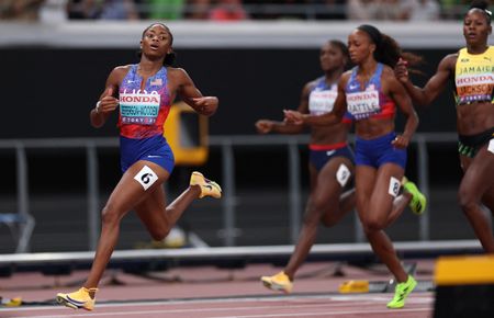 TOKYO (Reuters) – American Melissa Jefferson-Wooden became the fourth woman to complete the sprint double at the world championships with victory in the 200 metres in 21.68 seconds on Friday.