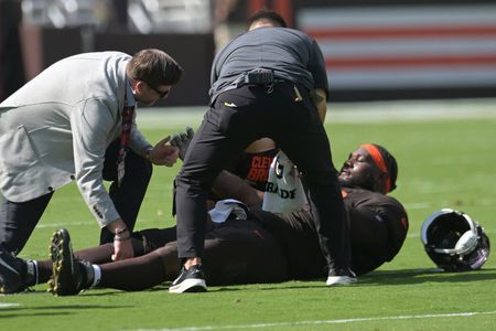 Cleveland Browns offensive tackle Dawand Jones is out for the remainder of the season with a torn right ACL.