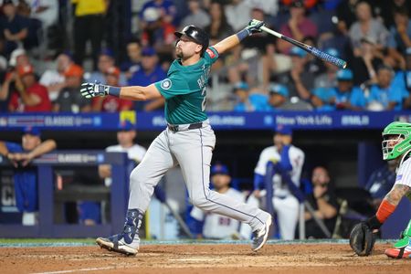 Seattle Mariners slugger Cal Raleigh homered in the first inning of his team’s home game against the Athletics on Sunday, tying Salvador Perez for the most home runs in a season by a primary catcher.