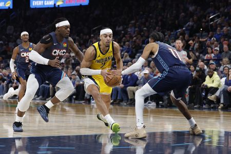 Andrew Nembhard produced 27 points and 11 assists to lead the Indiana Pacers to a 117-114 road win over the Oklahoma City Thunder on Friday in a rematch of last season’s NBA Finals.