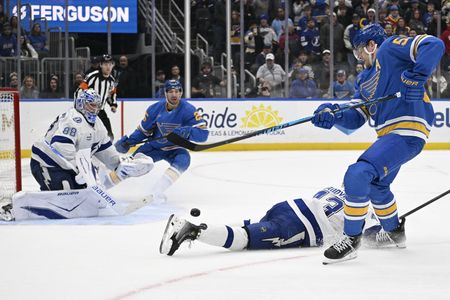Joel Hofer made 34 saves through regulation and overtime and added three more stops in the shootout as the St. Louis Blues edged visiting Tampa Bay 3-2 on Friday to snap the Lightning’s 11-game winning streak.