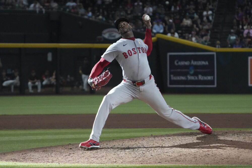 Leading 7-4 after a late rally, Cora sent Chapman to close it out and he did it with a flourish, joining elite company by striking out four in the ninth inning for his 29th save. Arizona’s Ildemaro Vargas reached first after striking out on a wild pitch, then Champan closed it out by striking out Jordan Lawler to become the second pitcher four Ks in an inning this season, with St. Louis’ Steven Matz in June.