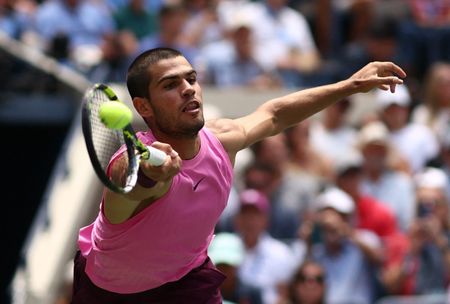 NEW YORK (Reuters) -Second seed Carlos Alcaraz cruised into the U.S. Open semi-finals on Tuesday, demolishing Czech Jiri Lehecka 6-4 6-2 6-4 on Arthur Ashe Stadium.