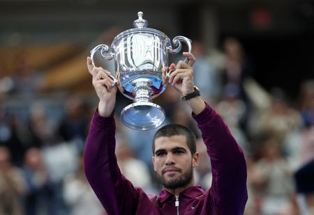 NEW YORK (Reuters) -Carlos Alcaraz claimed the U.S. Open crown for a second time with his win over Jannik Sinner on Sunday, a victory which showcased the Spaniard’s evolution over the last three years from the impulsiveness of youth to the measured maturity of a six-time Grand Slam winner.