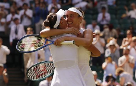 (Reuters) -Eighth seeds Veronika Kudermetova and Elise Mertens fought back from a set down to win their first Grand Slam as a pair, beating Hsieh Su-Wei and Jelena Ostapenko 3-6 6-2 6-4 in the Wimbledon women’s doubles final on Sunday.