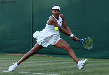 LONDON (Reuters) -Four-times Grand Slam winner Naomi Osaka survived a first-round scrap with Australian qualifier Talia Gibson to advance at Wimbledon with a battling 6-4 7-6(4) first-round win on Monday.