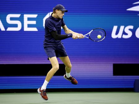 NEW YORK (Reuters) -Defending U.S. Open champion Jannik Sinner continued his stellar run at the hardcourt Grand Slams with a 6-1 6-1 6-1 hammering of Kazakh 23rd seed Alexander Bublik on Monday to make the quarter-finals at Flushing Meadows.
