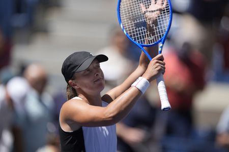 NEW YORK (Reuters) -World number two Iga Swiatek walloped her U.S. Open first-round opponent Emiliana Arango in a near flawless performance in the opening match at Arthur Ashe Stadium on Tuesday, as home fans eagerly awaited 2023 champion Coco Gauff.