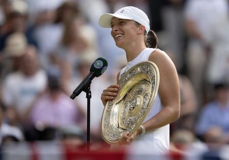 LONDON (Reuters) -During the Wimbledon fortnight, a grinning Iga Swiatek was often caught on camera cramming dozens of official towels into her tennis bags, creating a running joke that ‘Wimbledon’s towel thief strikes again!’