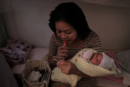 IROSIN, Philippines/NEW TAIPEI, Taiwan (Reuters) -Marian Duhapa kisses her quietly sleeping baby daughter Quinn goodbye as she prepares for the 16-hour bus trip from her remote village in the Philippines to Manila airport before flying back to Taiwan and work.