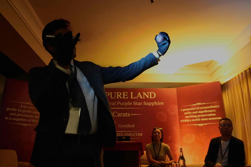 The round shaped gem named “Star of Pure Land” is the world’s largest documented natural purple star sapphire, said Ashan Amarasinghe, a consultant gemologist.